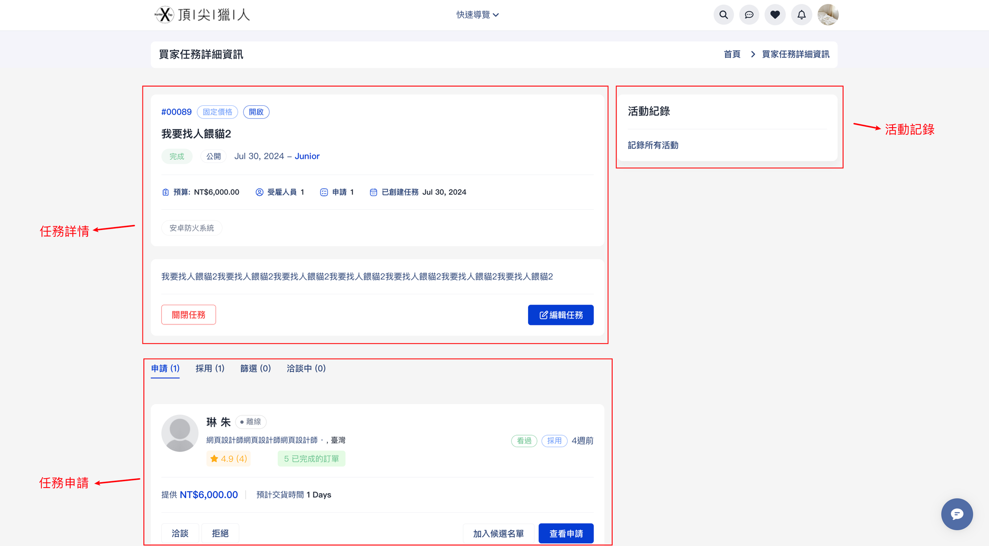 - 任務詳情:此模塊展示任務的詳細信息,如任務標題、任務詳情、創建時間等。可關閉或編輯任務。