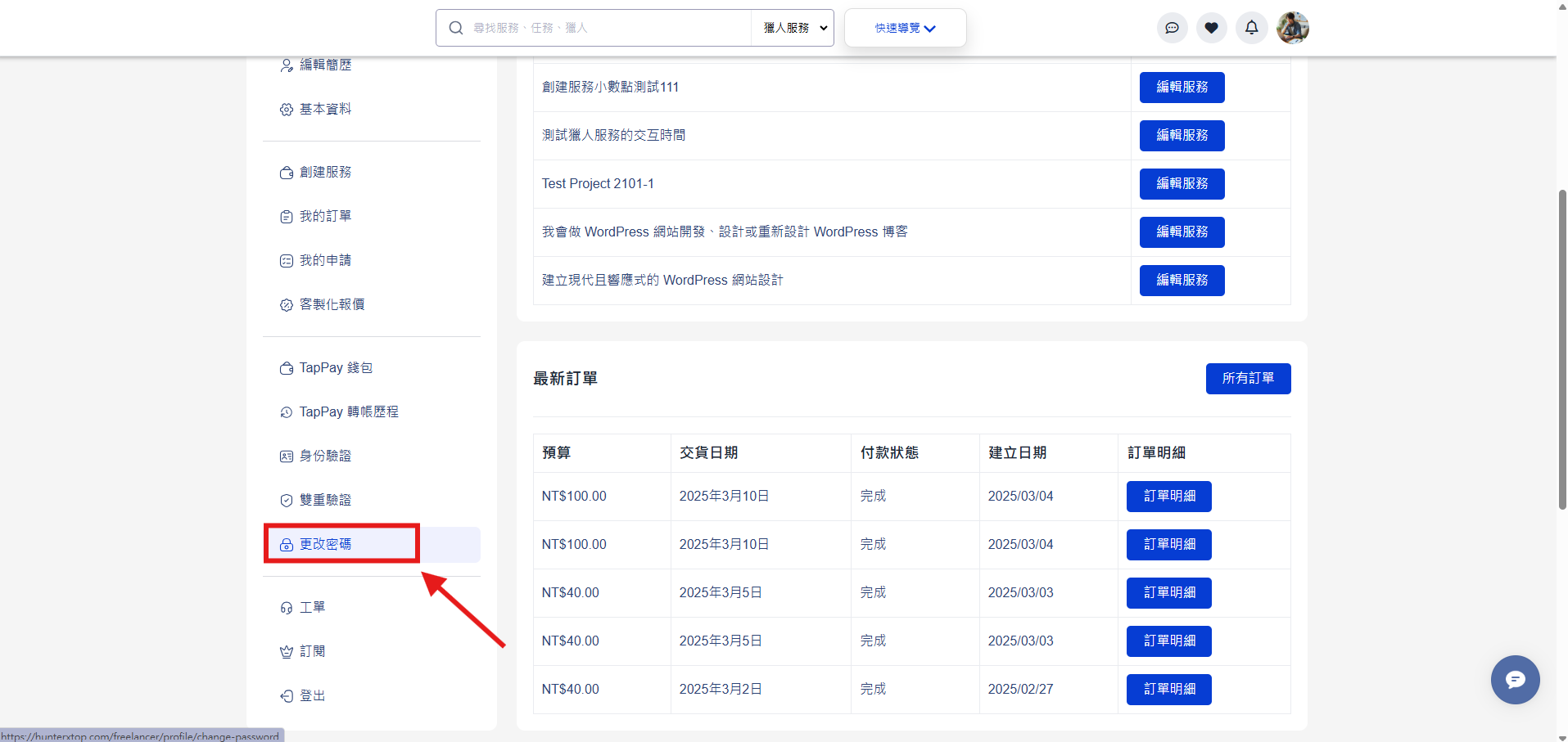 如何修改密碼 頂尖獵人幫助中心 2025年03月19日 04:20 更新於 注意 : 如果使用第三方註冊將無此功能 點擊 服務總覽 點擊 更改密碼 在此輸入您的舊密碼與想要改變的新密碼 相關文章 登錄雙重驗證 開立第三方托管帳戶(Tappay帳戶) 關注清單 評論 0 條評論 請登入寫評論。